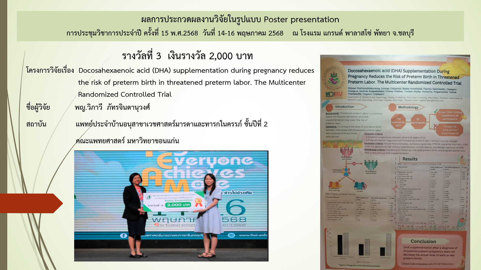 ผลการประกวดโปสเตอร์ และผลงานนวัตกรรม ในการประชุมวิชาการประจำปี ครั้งที่ 15 พ.ศ.2568